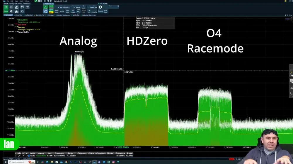 Race mode simplifies the spectrum by aligning telemetry and video on the same frequency, reducing the RF footprint. Users can manually adjust power output to ensure compliance with race regulations, but the inherent variable latency system remains unchanged.