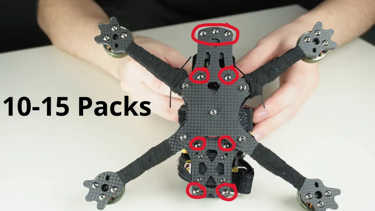 Nils checks arm screws every 3 to 5 packs, motor screws every 5 to 8, and other screws about every 15 packs.
