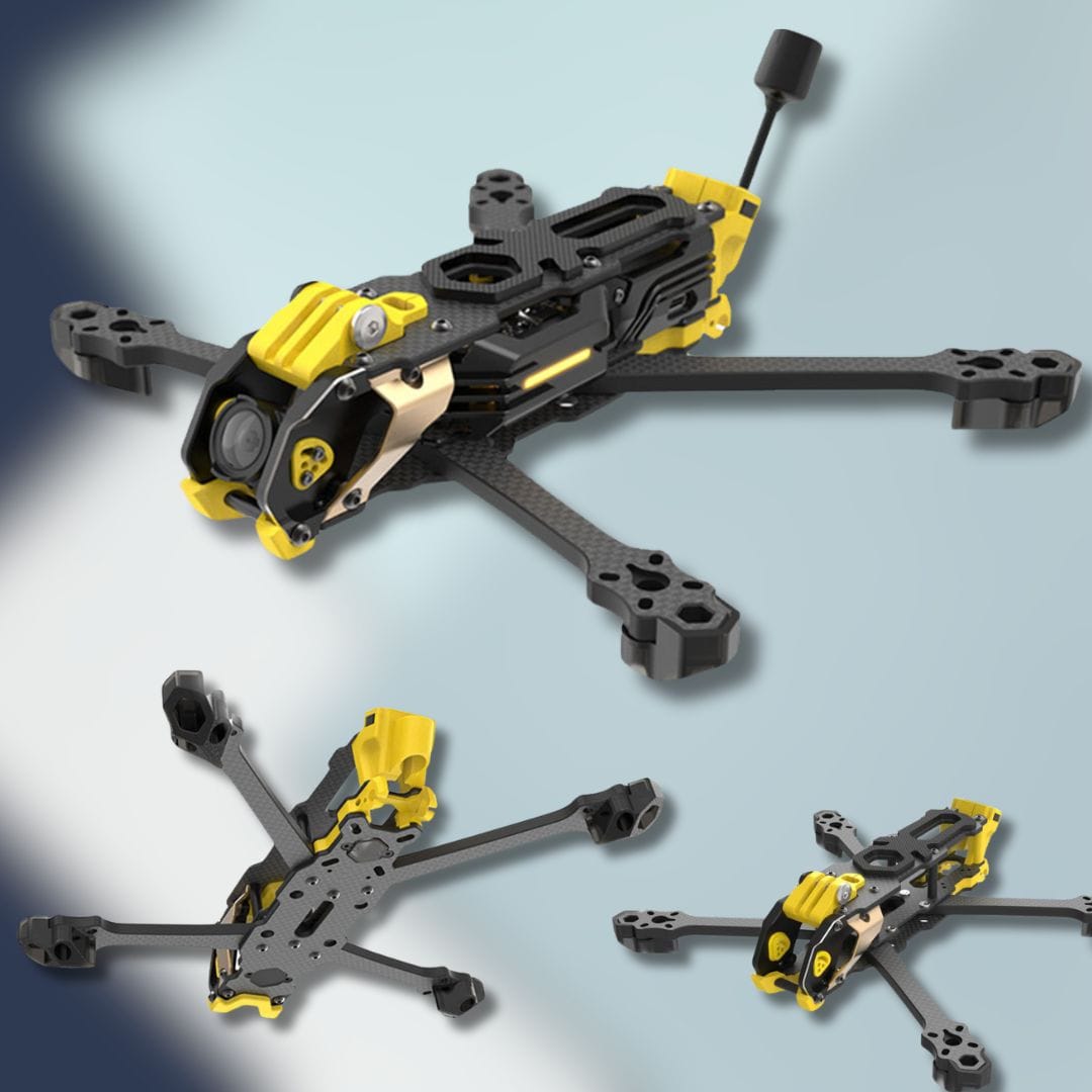 Speedy B, known for their budget-friendly yet quality drone frames, has recently launched the Mario 5 Frame, available in two designs: the Dead Cat (DC) style and the Classic X (XH) style. The DC style is particularly intriguing for those into GoPro flying, offering a unique layout that caters to aerial photography enthusiasts.